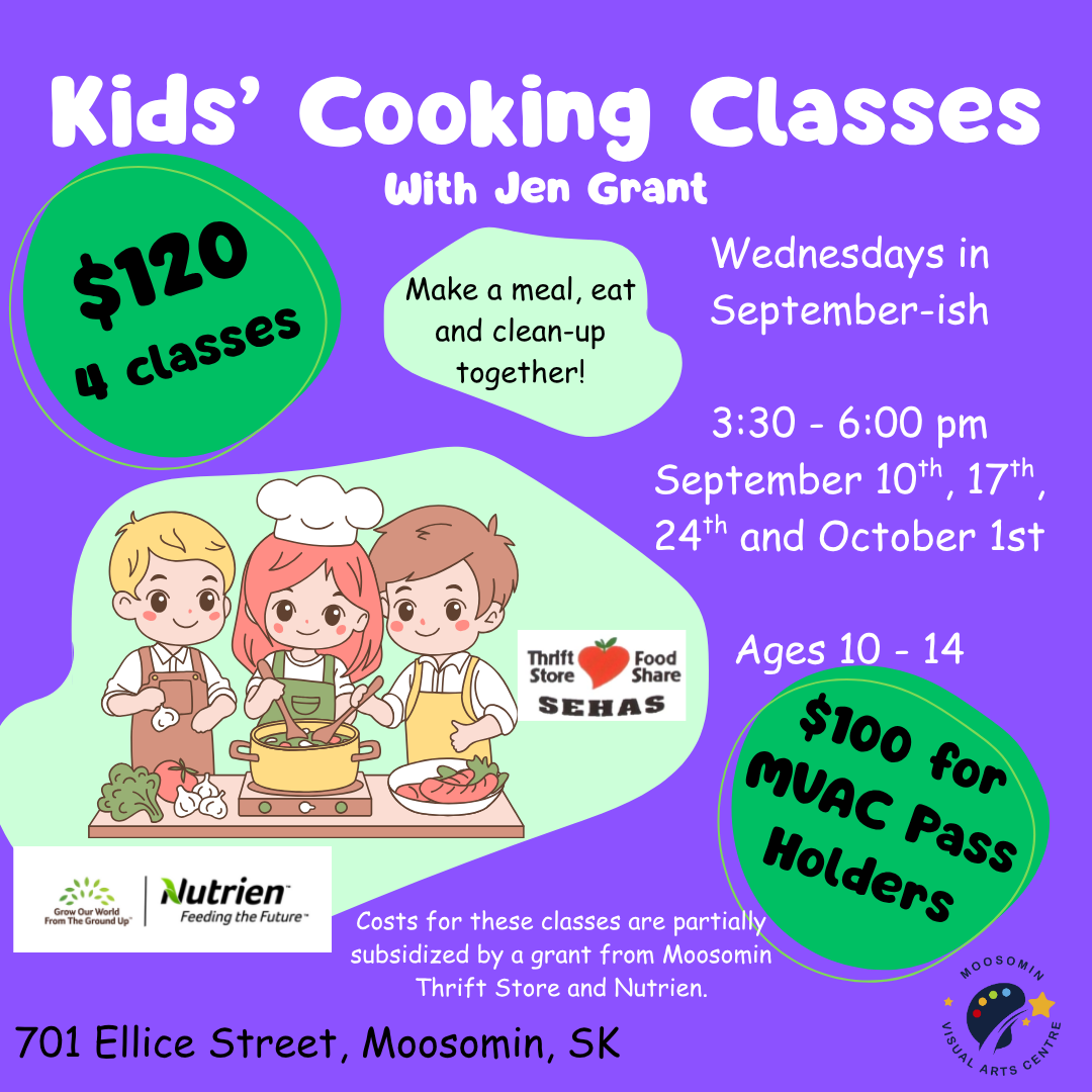 Jen Grant will teach your kid(s) to cook and clean up after themselves! Participants will sit down and enjoy their creations before heading home (that means you don’t have to make them supper). This is a set of 4 classes that will take place after school on Wednesdays in September (and the first Wednesday of October).